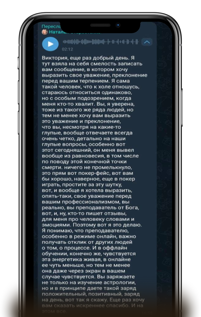 Знаний недостаточно, если вы не умеете донести их до человека. На обучении вы не просто изучите, как устроена натальная карта, — вы научитесь рассказывать по карте ясно и уверенно, выдерживая логику.